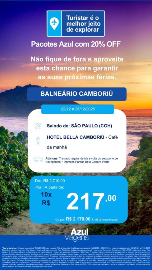 Aproveite promoções exclusivas em passagens, pacotes e serviços para garantir viagens incríveis e economizar muito.